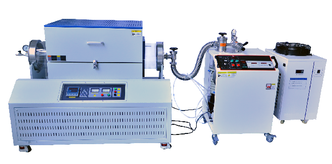 High vacuum molecular pump set: Diffusion pump unit Ultimate Vacuum degree : 2.5*10^-4Pa Max.vacuum for tube furnace:5*10^-3pa Main pumping rate:≥280 L/s Fore-pump pumping rate:3 L/s Power:1.8kw KF25 quick connect, stainless steel bellows, manual flapper valve and flange, vacuum pump Water Chiller connect vacuum pump |