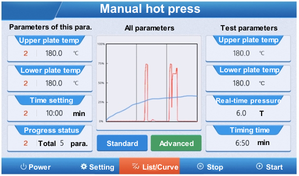 Standard interface: The heating temperature and constant temperature time of the upper and lower plates can be set separately on the interface.