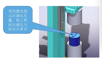 利用激光指示注液孔位置,放工件时注液孔与标定点重合